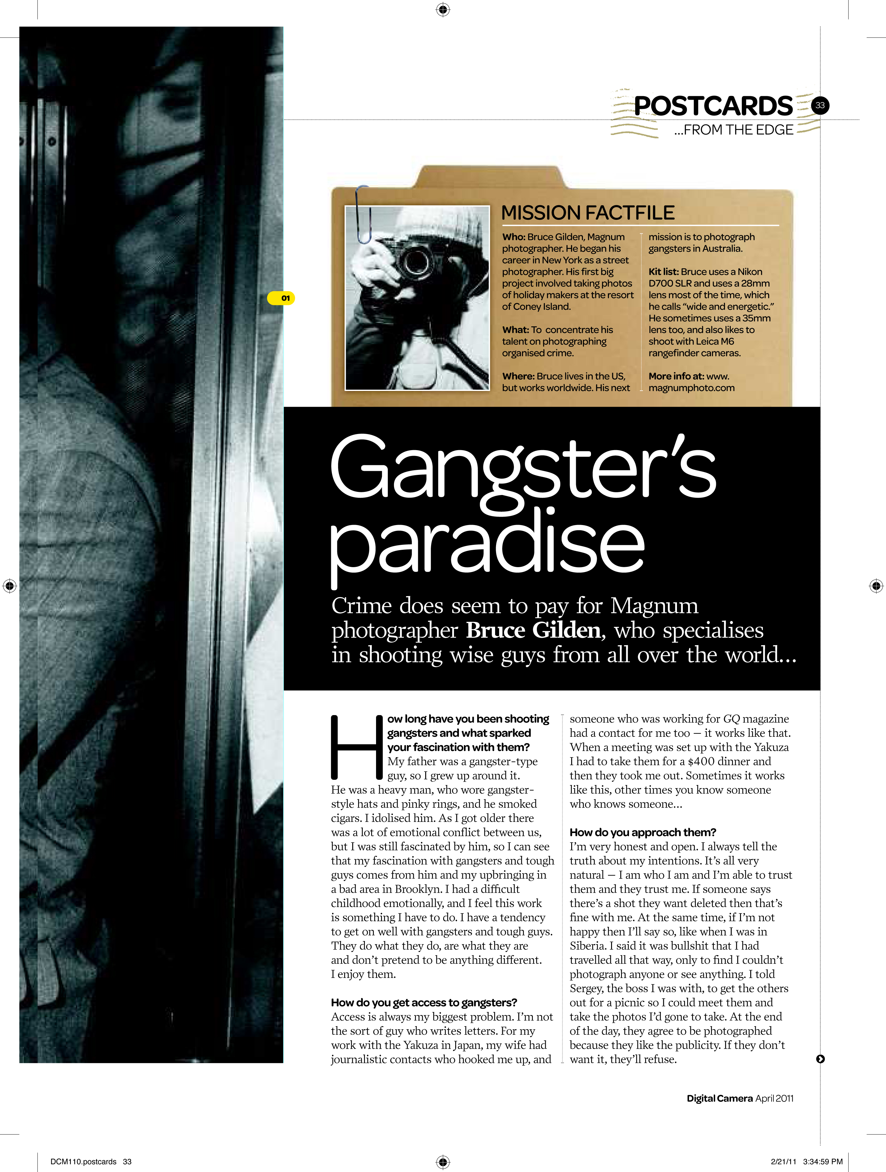Interview with Magnum photographer Bruce Gilden, who specialises in shooting tough guys from all over the world.