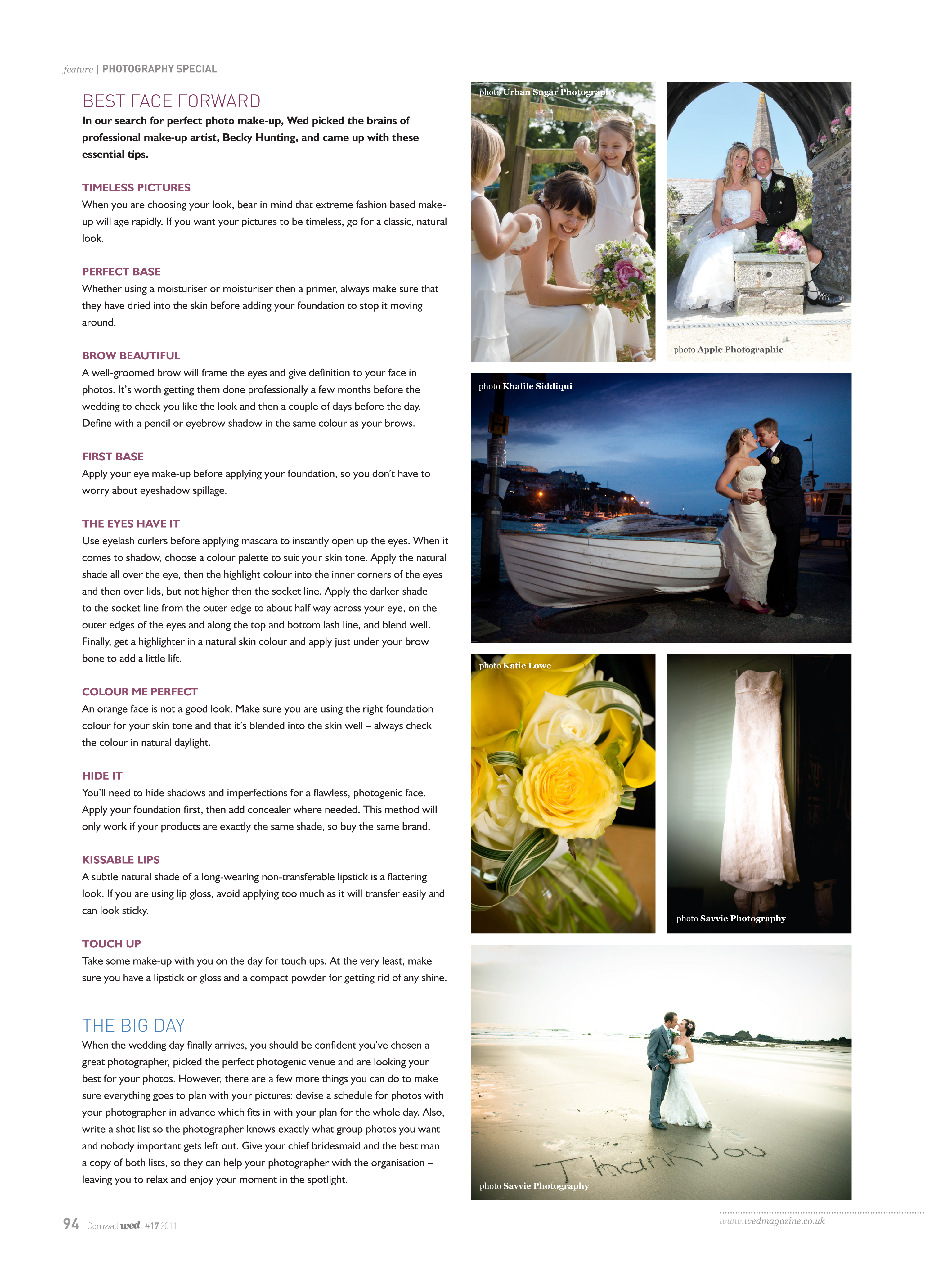 In this photography guide for Wed Magazine I cover everything from choosing a photographer to photo friendly make-up.