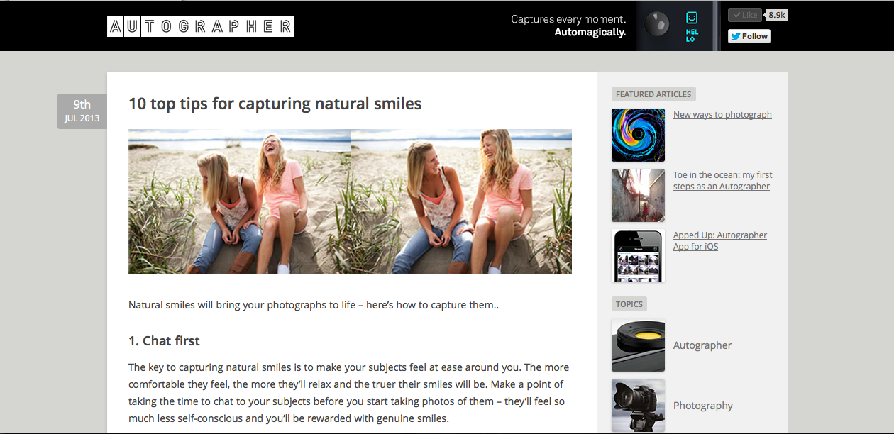 Natural smiles will bring your photographs to life, but capturing them can be tricky – published on Autographer are my ten top tips to make the task easier. Read my article here.
