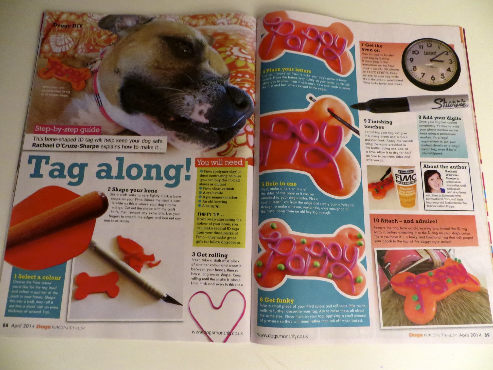 April’s edition of Dog’s Monthly magazine sees me show readers how to use polymer clay to create a funky and functional ID tag for their dog.