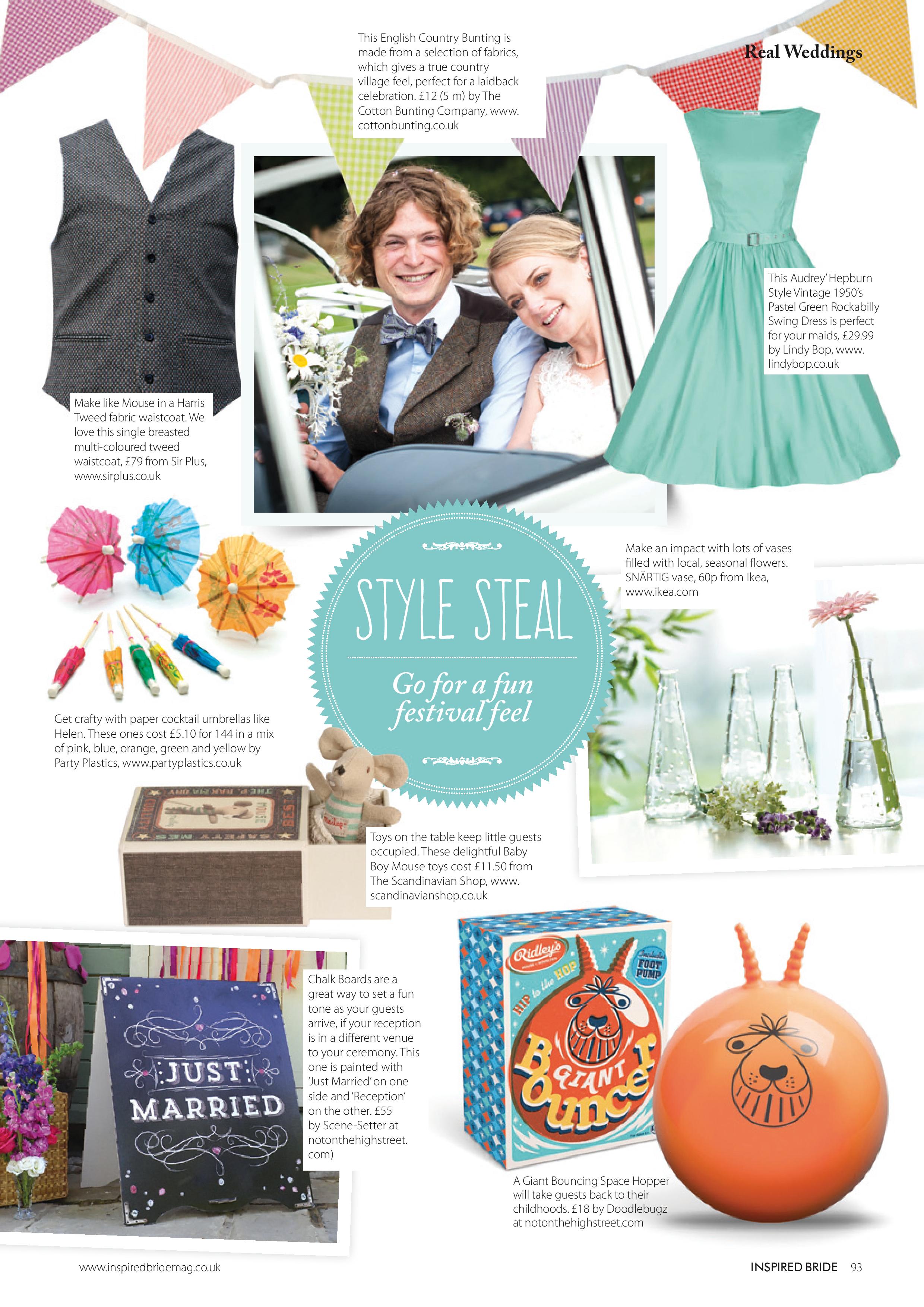 Inspired Bride’s feature material is intelligent, our photoshoots are breathtaking, our DIY tutorials are unbelievably cool and the real weddings we select span pretty much every style you can imagine and are guaranteed to wow. The magazine, which carries the strapline of ‘for weddings less ordinary’ is all about sparking readers’ creativity and leaving them feeling energized and ready to enjoy their planning.
