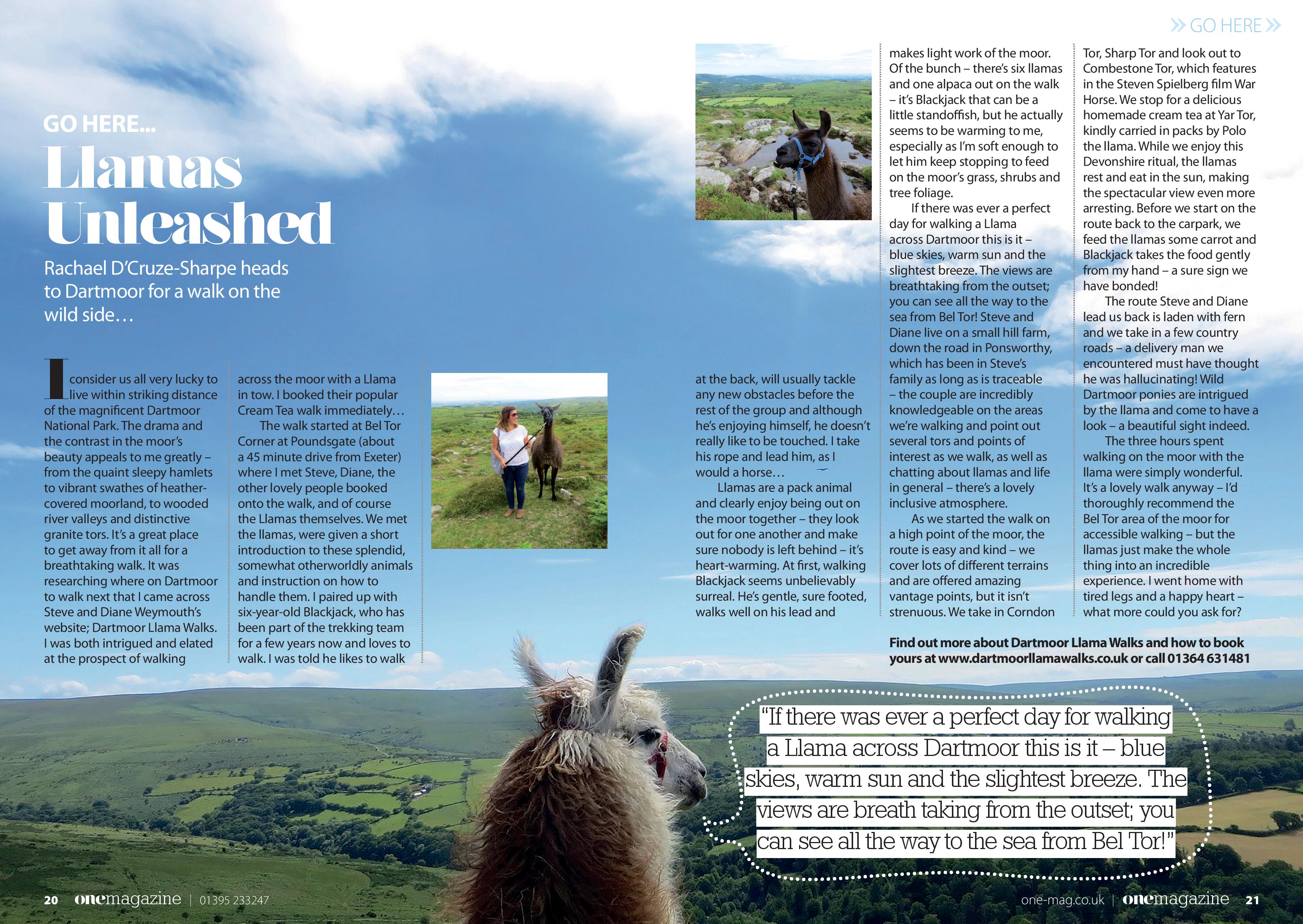 This summer I’ve enjoyed being commissioned to write and photograph several walks in Devon. My dog, Poppy, has enjoyed all of them immensely, other than this one, which saw me walk a Llama across Dartmoor. One ticked off my quirky bucket list for sure!