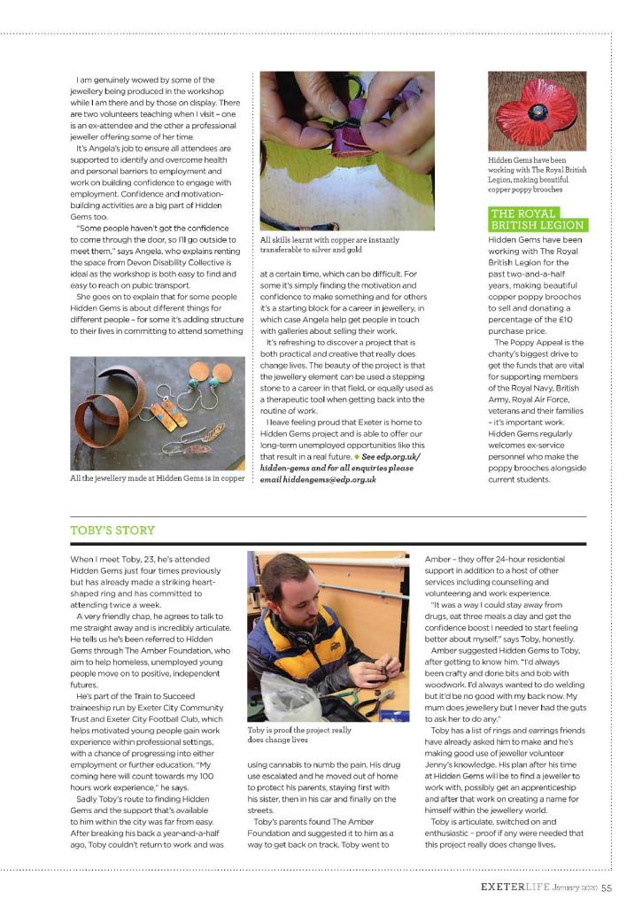 Exeter’s Hidden Gems workshop is a project that is transforming lives and I’m honoured to have written about it for the January 2020 issue of Exeter Life. Have a read here.