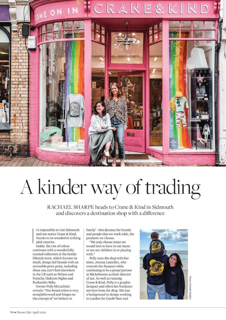 I recently wrote a piece for Devon Life on Sidmouth’s Crane & Kind – a destination shop with a difference. Have a read and discover a kinder way of trading.