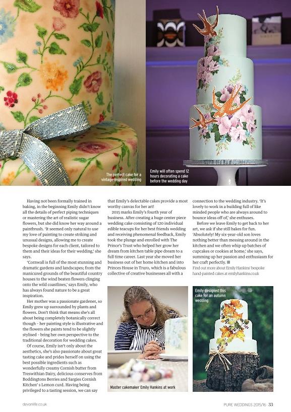 Archant’s Pure Weddings 2015/16 has hit the shelves and I’m pleased it includes my feature on master cake maker, Emily Hankins. I was lucky enough to spend a day with Emily recently and try my hand at cake painting – it’s certainly a skill I’ll enjoy working on.