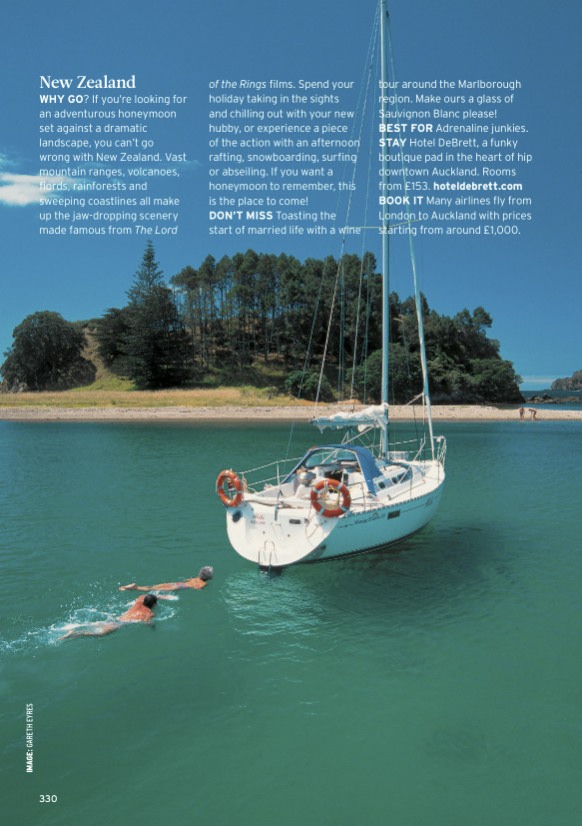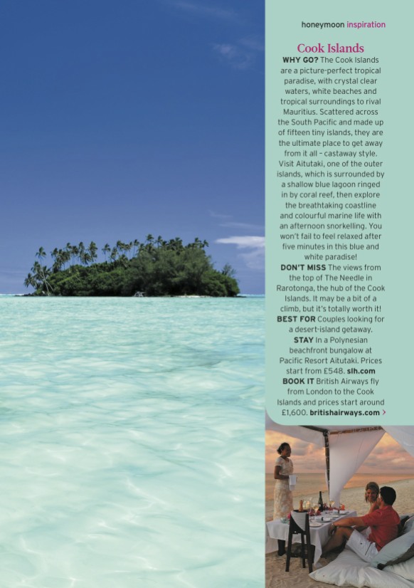 2014 Honeymoon Hotspots travel feature published in Perfect Wedding Magazine