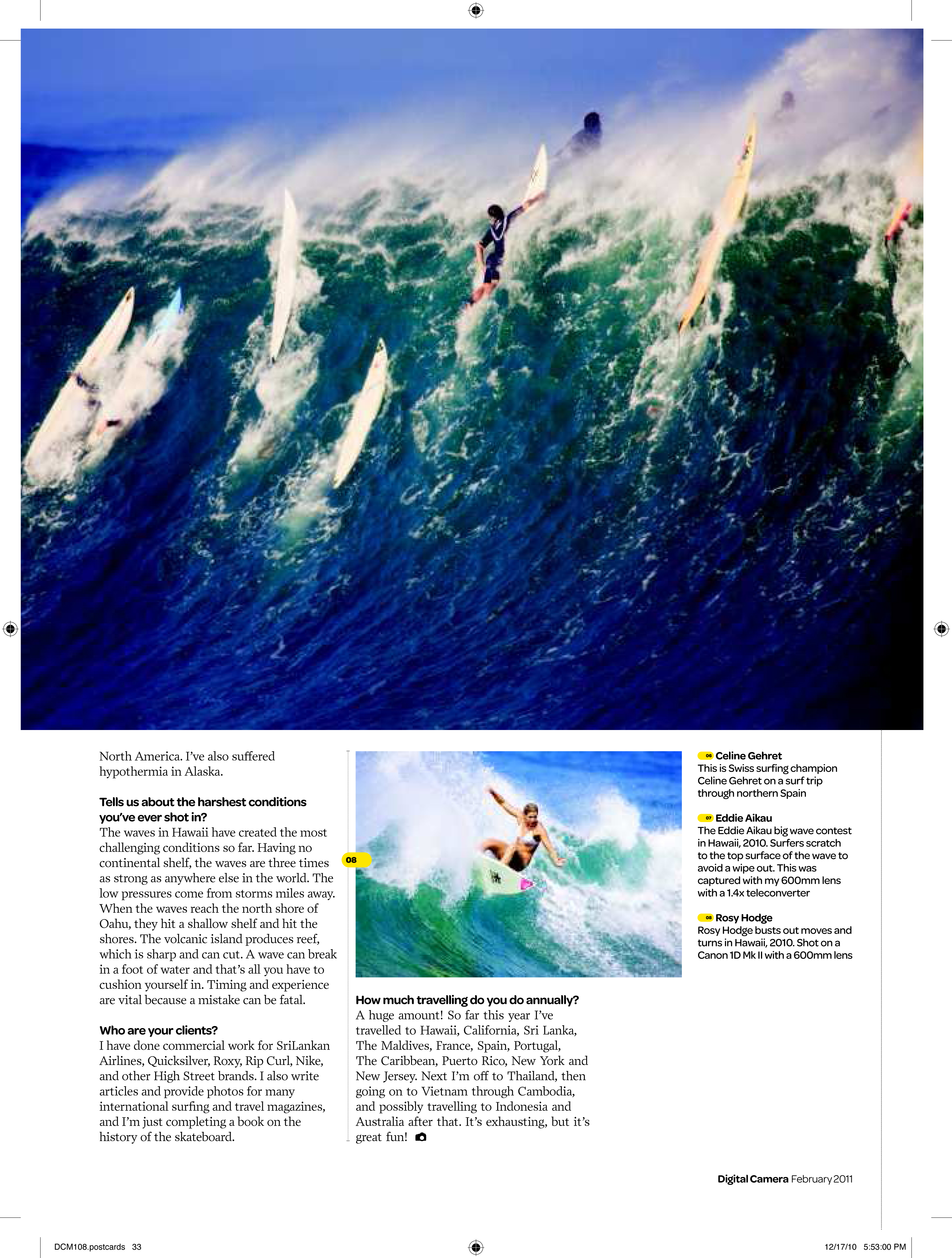 To say that Lucia Griggi has an enviable lifestyle is a bit like saying Jimi Hendrix was ‘good’ at playing the guitar. Lucia’s made her dreams a reality, courtesy of good old hard work and determination. She relocated from Cornwall to California in 2010, but spends most of her year globetrotting – whilst photographing surfing, surf lifestyle and wildlife in some of the most beautiful locations around the world. Her client list includes Roxy, Vans, Red Bull, Land Rover and National Geographic, amongst others. Most impressively however, is the freshness and energy she brings to her photography; she has a genuinely rare talent for emerging the viewer in a picture, as if you were there with her. Read my interview interview with Lucia here, over at Autographer.
