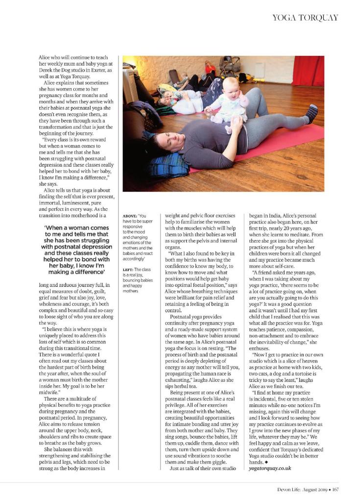 I recently headed to Torquay’s newly opened yoga studio, Yoga Torquay, and met owner Alice Chapman, champion of yoga for women’s health. My piece explores Alice’s journey as a yoga teacher and why pregnancy and mother and baby yoga has become her speciality.