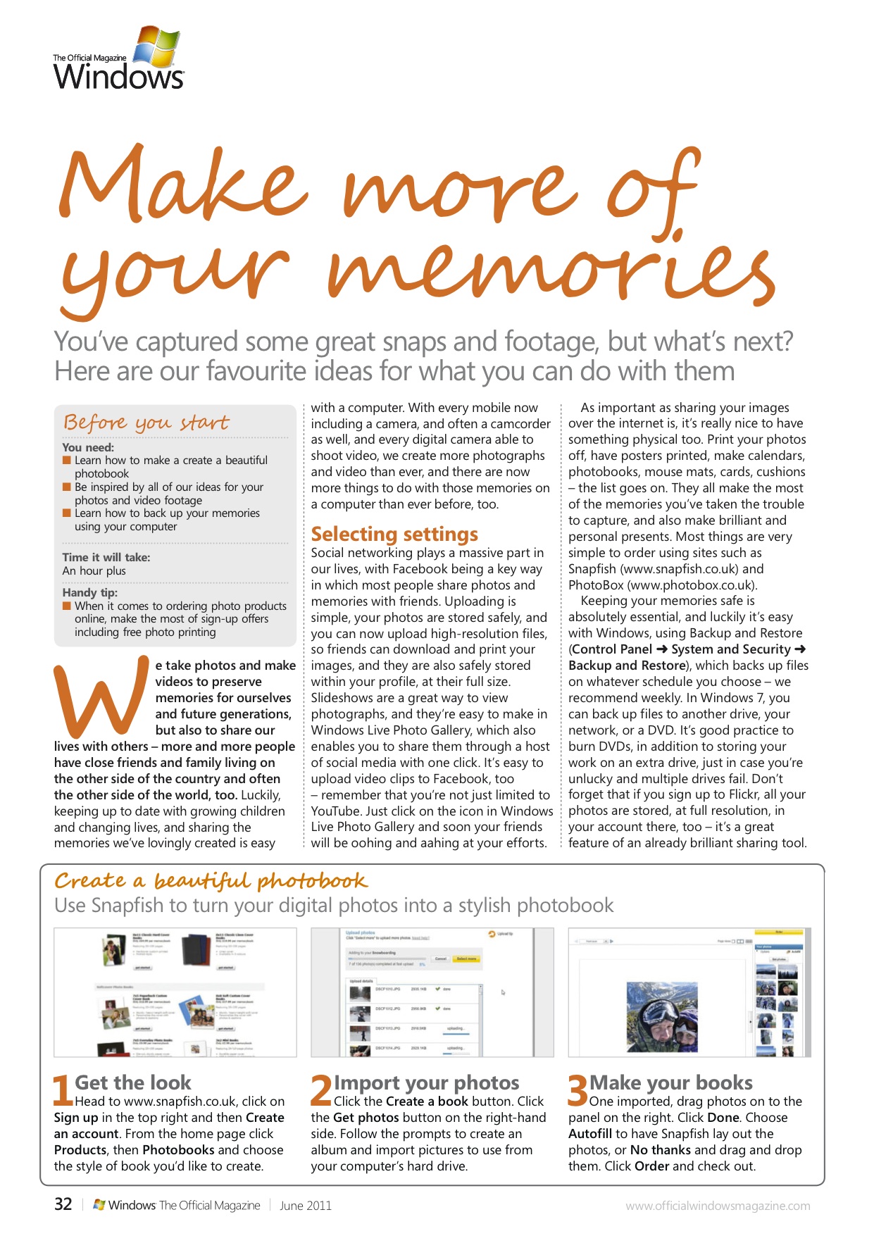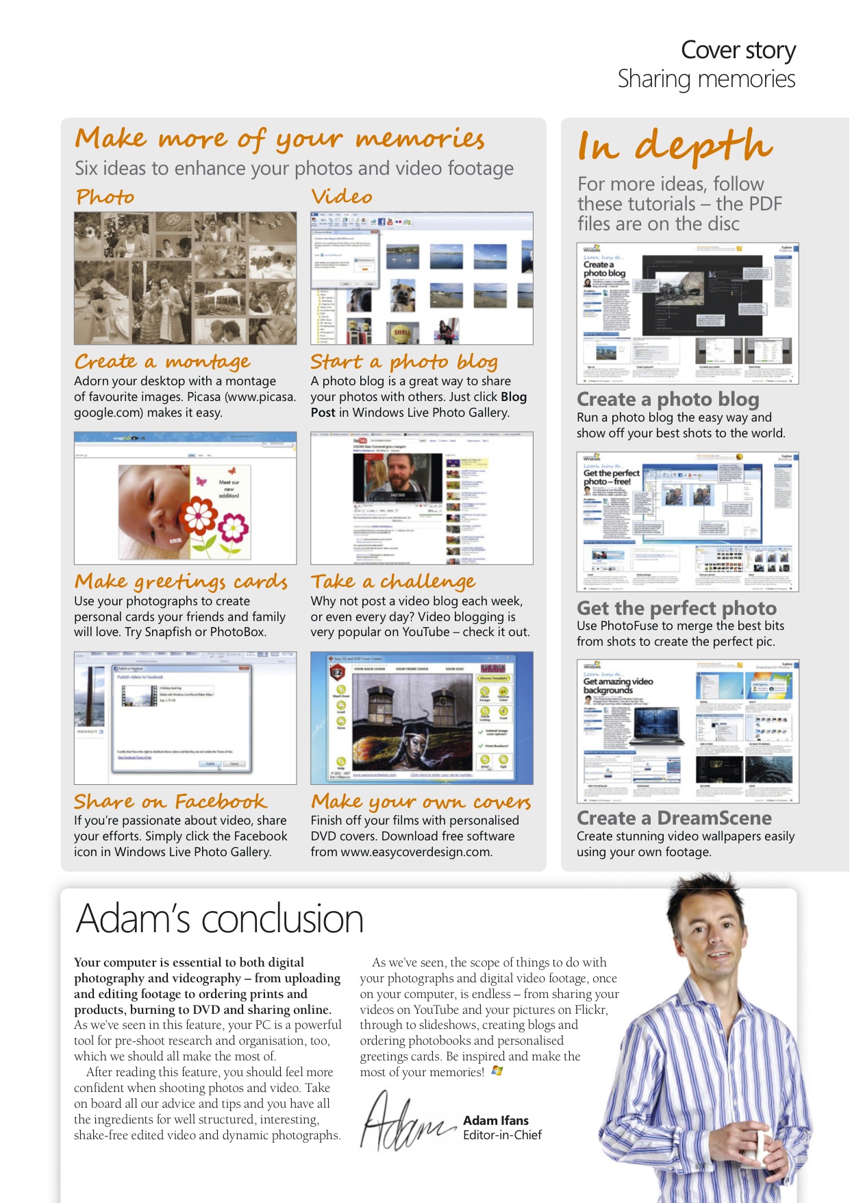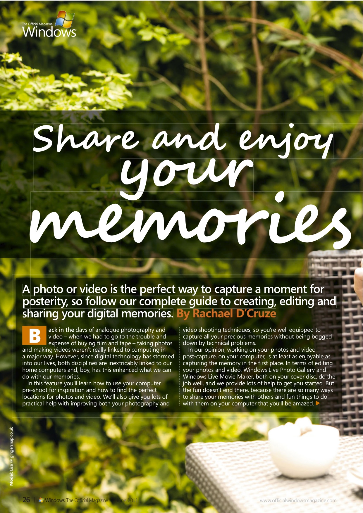 A photo or video is the perfect way to capture a moment for posterity, in my eight page guide to creating, editing and sharing your digital memories I show Windows: The Official Magazine readers how best to share and enjoy their memories.